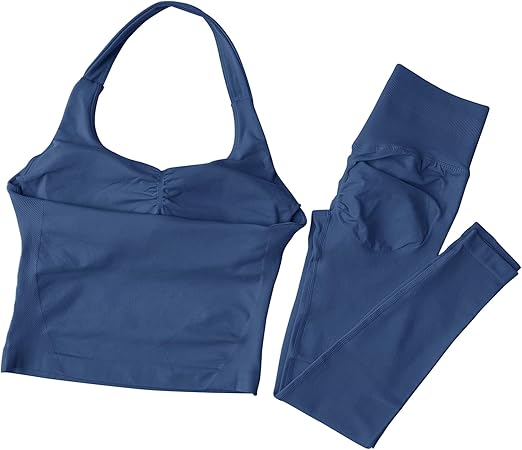MAYROUND Womens Workout Sets Gym Outfits 2 Pieces Seamless Longline Halter Backless Crop Top Hidden Scrunch Leggings Yoga Tracksuit